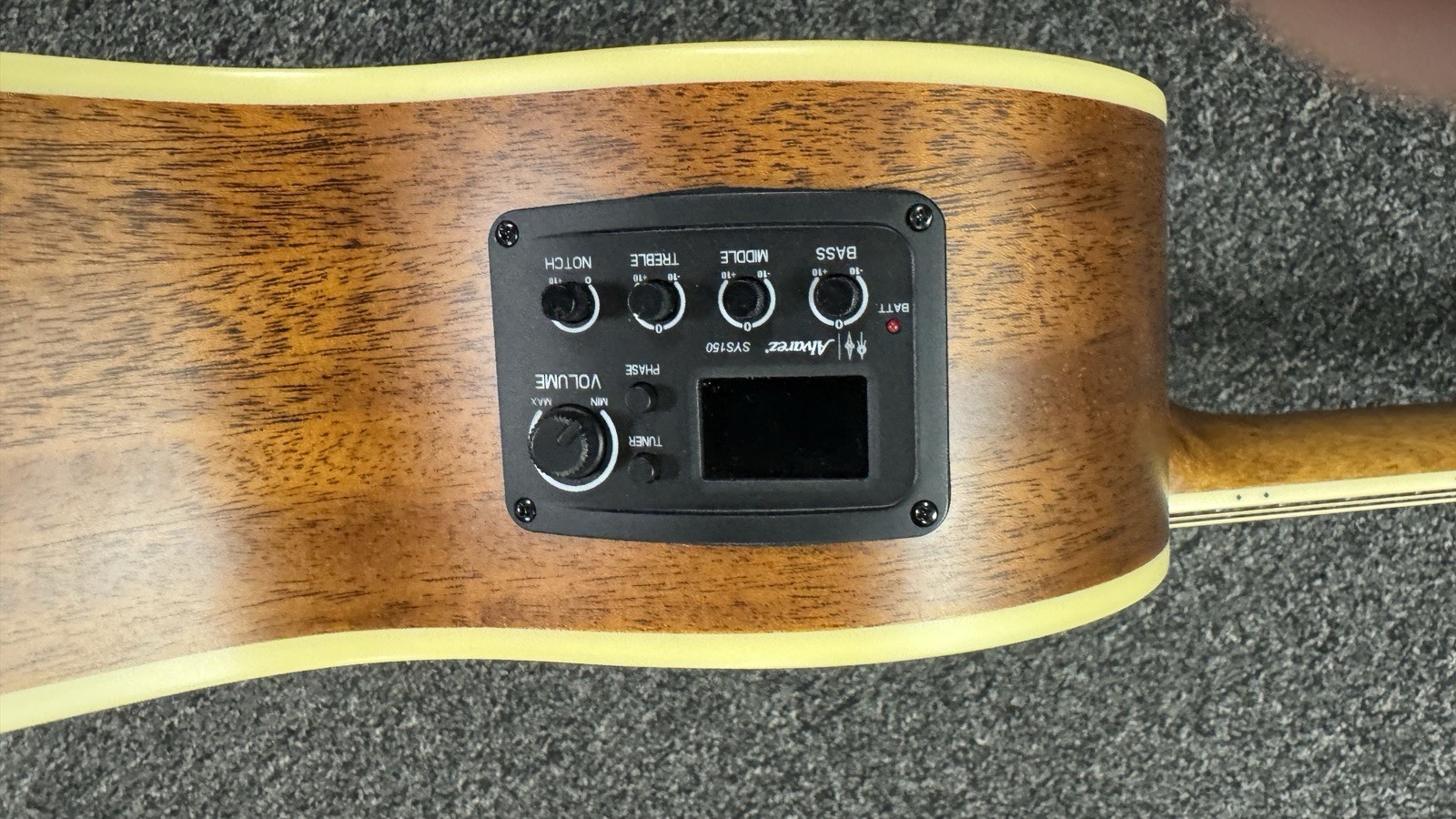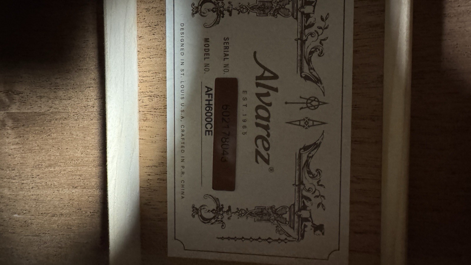 Alvarez AFH600CE Solid Top Acoustic Electric Guitar With Herring Bone. Condition is Used. Shipped with UPS Ground.