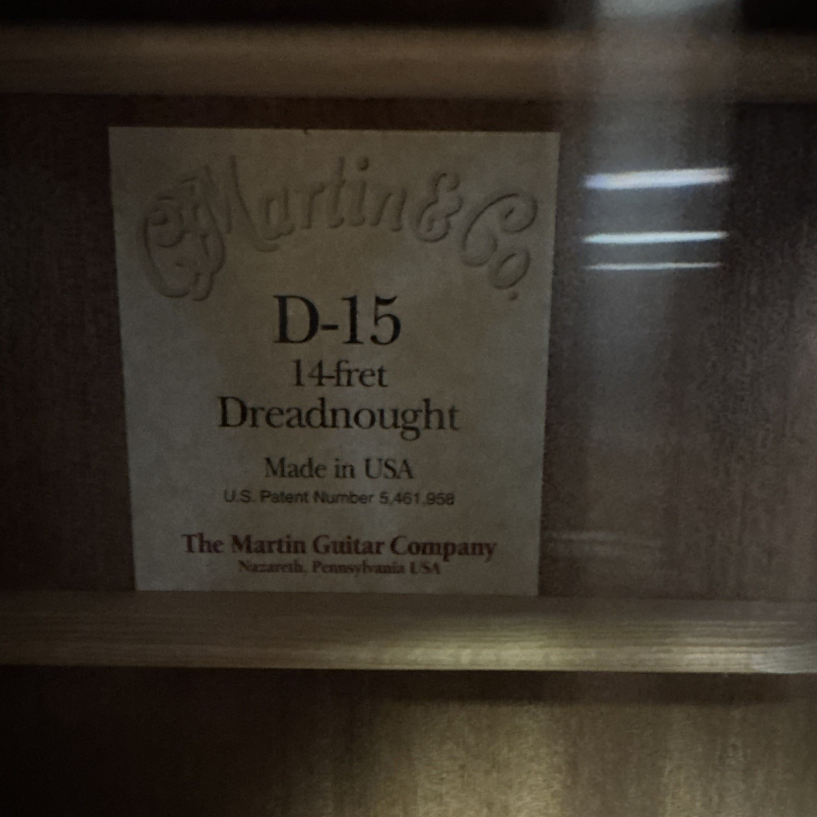 In excellent condition, 2005 Martin D 15 all solid Wood still has the plastic on pick guard. Minimal signs of use if any like scratches around the body or headstock.