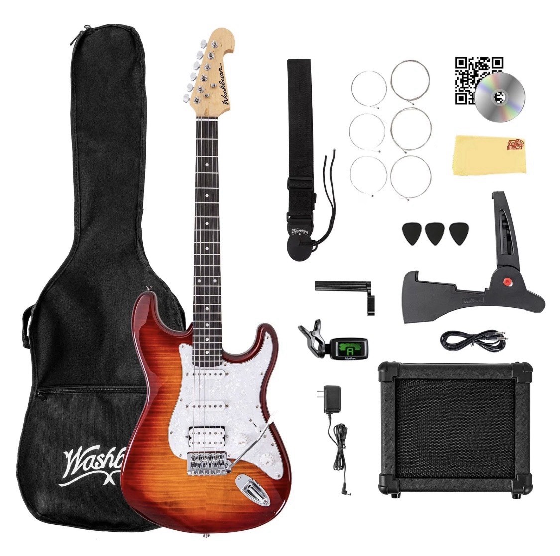 Washburn Sonamaster Deluxe Electric Guitar Pack Sunburst w Amp Accessories Wipes